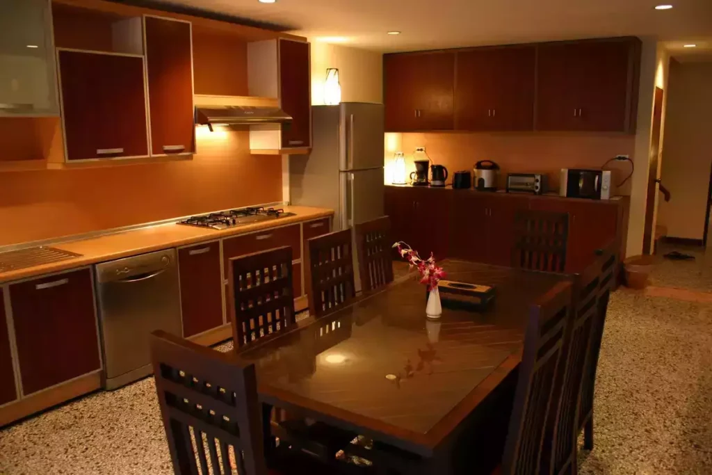 In the fully equipped kitchen area there is;