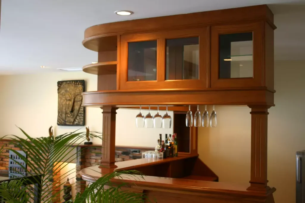 2 floors, 3 bedrooms, 3 bathrooms, 1 kitchen, 1 bar.
